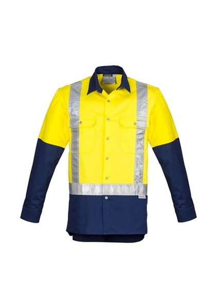 Mens Hi Vis Spliced Industrial L/S Shirt - Shoulder Taped