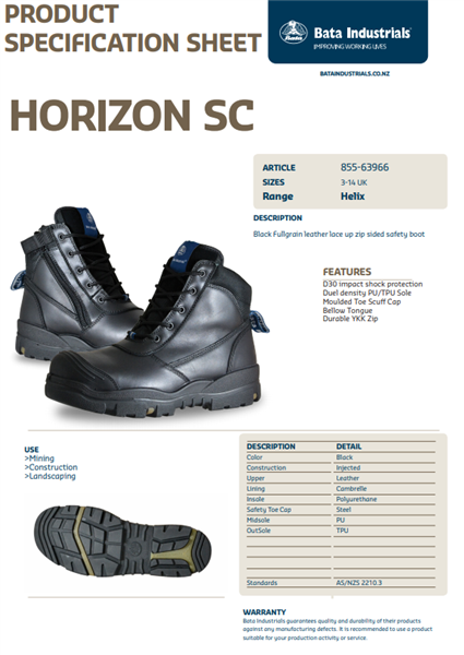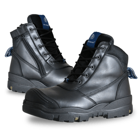 Black Fullgrain leather lace up zip sided safety boot- D30 impact shock protection