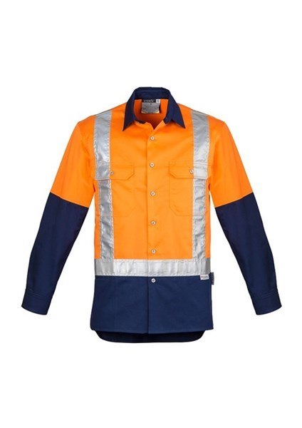 Mens Hi Vis Spliced Industrial L/S Shirt - Shoulder Taped