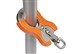 Temporary scaffold clamping device, this unique design grips to both vertical and horizontal scaffold pipes- This gives more opportunity to quickly provide a secure temporary anchor point for a worker to attach onto, given there is normally a secure vertical scaffold pipe available before horizontal bracing is installed.