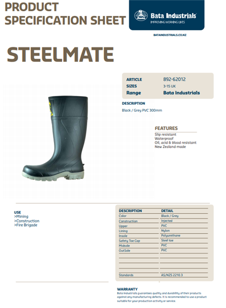 Steelmate black is an ideal boot for use in construction, farming or any industry on rough terrain in which you need to keep your feet dry- This boot features a steel toe and penetration resistant midsole